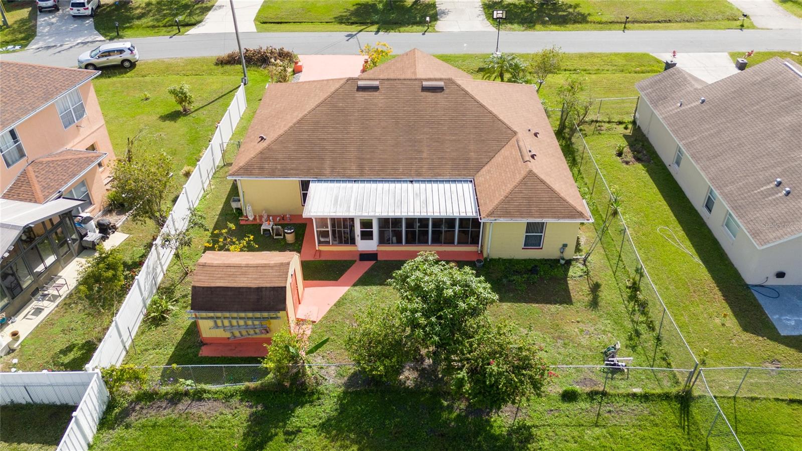 PublicRemarks:-CHARMING 4 BEDROOMS, 2 BATHROOMS HOME WITH PLENTY OF POTENTIAL. This inviting 1806 Sf. home offers the perfect combination of space, comfort and style. Featuring a spacious open kitchen with beautiful granite countertops, seamlessly flowing into the family room, this home is perfect for both family gatherings and entertaining. The formal, private dining room adds a touch of elegance to your meal times. Throughout the home, you'll find durable ceramic tile in the common areas, while the cozy bedrooms provide carpet or laminated floors for the comfort. The well-maintained fenced yard is a standout feature, with lush landscaping, fruit trees like mango and lime, and a custom built shed to keep your tools and equipment organized. The roof is just 7 years old, ensuring peace of mind for years to come. Enjoy the Florida weather on the covered lanai, perfect for relaxing or hosting guests. The seller is motivated and ready to make a deal, bring your vision and make this home your own with your personal touches! This property is ideal for anyone looking for spacious, move-in ready home with room to grow and customize. Don't miss this opportunity and request your showing today! InteriorFeatures:-Ceiling Fans(s), Kitchen/Family Room Combo, Thermostat Appliances:-Convection Oven, Microwave, Refrigerator