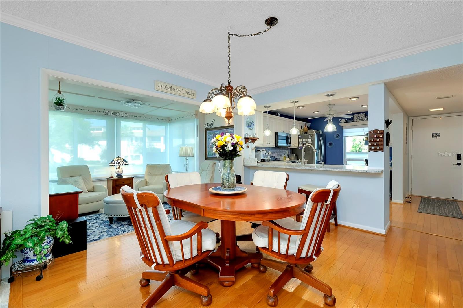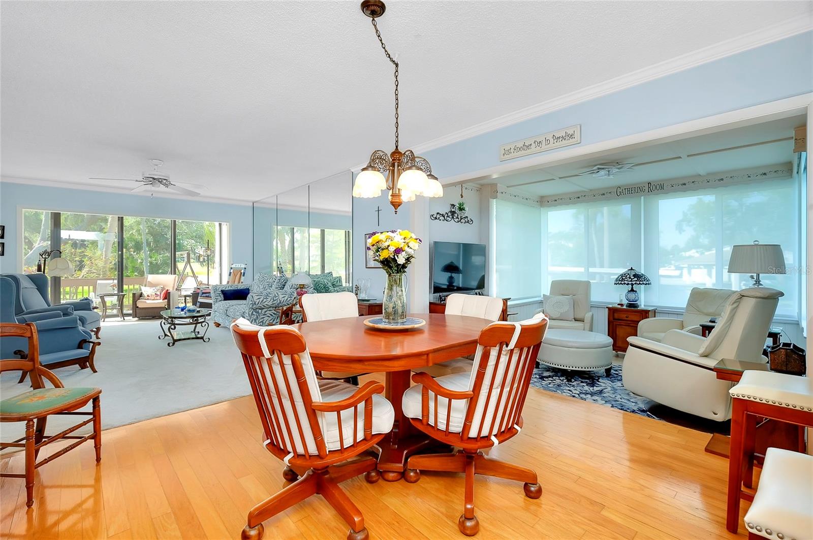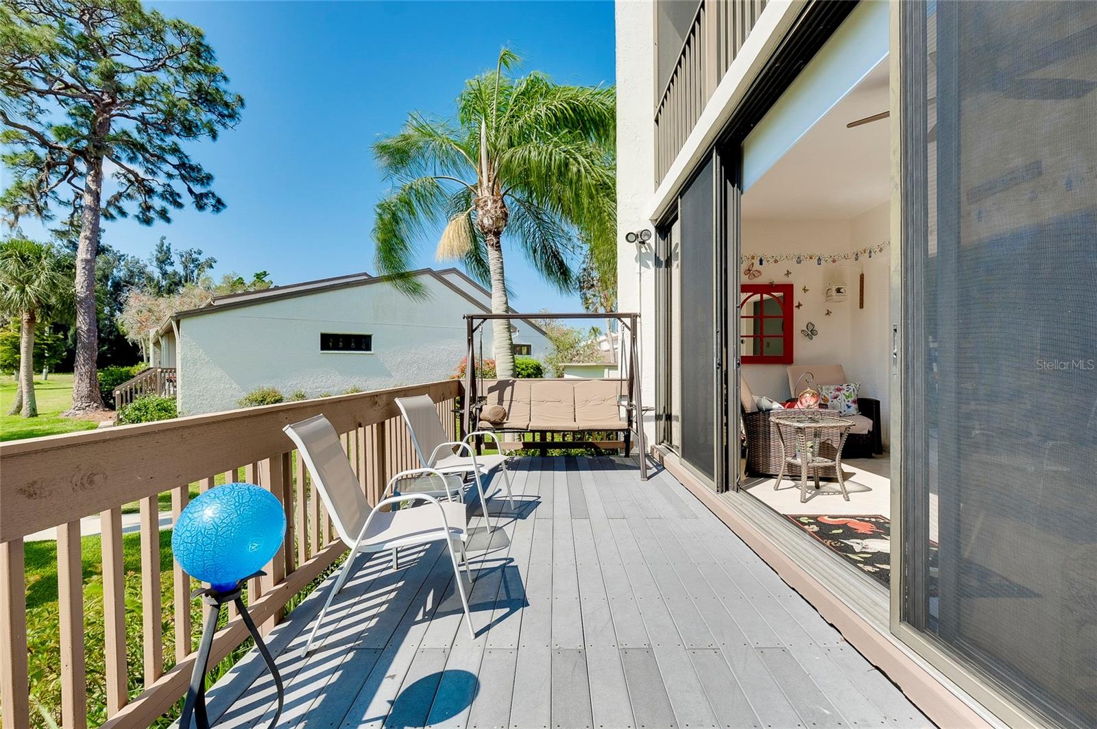 PublicRemarks:-BEAUTIFUL UPDATED FIRST FLOOR CONDO Spacious 2 bedrooms, 2 bathrooms nestled within Bird Bay Village offers a serene view steps away from the community pool. The bright and airy 2020 updated kitchen boasts stainless appliances with a colorful Corian countertop and built-in desk. The living space offers a cozy retreat of relaxation or entertaining with an Open Floor Plan dining room, living room combo with beautiful hardwood floors. Enjoy the lanai overlooking the mature landscape with all the sunlight pouring in through the sliders. The newly carpeted primary bedroom is equipped with a walk-in closet in addition to an ensuite with walk-in tiled shower, updated vanity and sink. Your guest will enjoy the guestroom complete with a Murphy bed and built in desk. The second bathroom has been updated with new vanity and sink. Enjoy your coffee in the sunny Florida Room with lots of sunlight. Added features include 2020 installed Hurricane windows and electric shades throughout the condo. Sliding doors leading to an outside deck surrounded by greenery make it a perfect retreat. The AC was replaced in 2020. Outside, residents can enjoy various amenities for outdoor living, from swimming in the pool to playing pickleball. The convenient location to the Island of Venice only 2 minutes away is a perfect blend of comfort and leisure in a charming setting. Adjacent to Bird Bay Village is the Legacy Trial, a dedicated bike path that extends all the way to Sarasota. Bird Bay also features a state- of- the -art fitness center, library and clubhouse. Enjoy the tennis courts and swimming pool, shuffleboard and bocce courts. No need to ever leave the property! Come for a visit, stay for a lifetime. InteriorFeatures:-Ceiling Fans(s), Eat-in Kitchen, Living Room/Dining Room Combo, Open Floorplan, Primary Bedroom Main Floor, Solid Surface Counters, Solid Wood Cabinets, Thermostat, Walk-In Closet(s), Window Treatments Directions:- US 41 Bypass heading South, turn left onto Bird Bay Dr. Follow until you see Bird Bay Way on your left. Turn left onto Bird Bay Way unit 838 is located on the left first floor. Appliances:-Dishwasher, Disposal, Dryer, Electric Water Heater, Exhaust Fan, Microwave, Range, Range Hood, Refrigerator