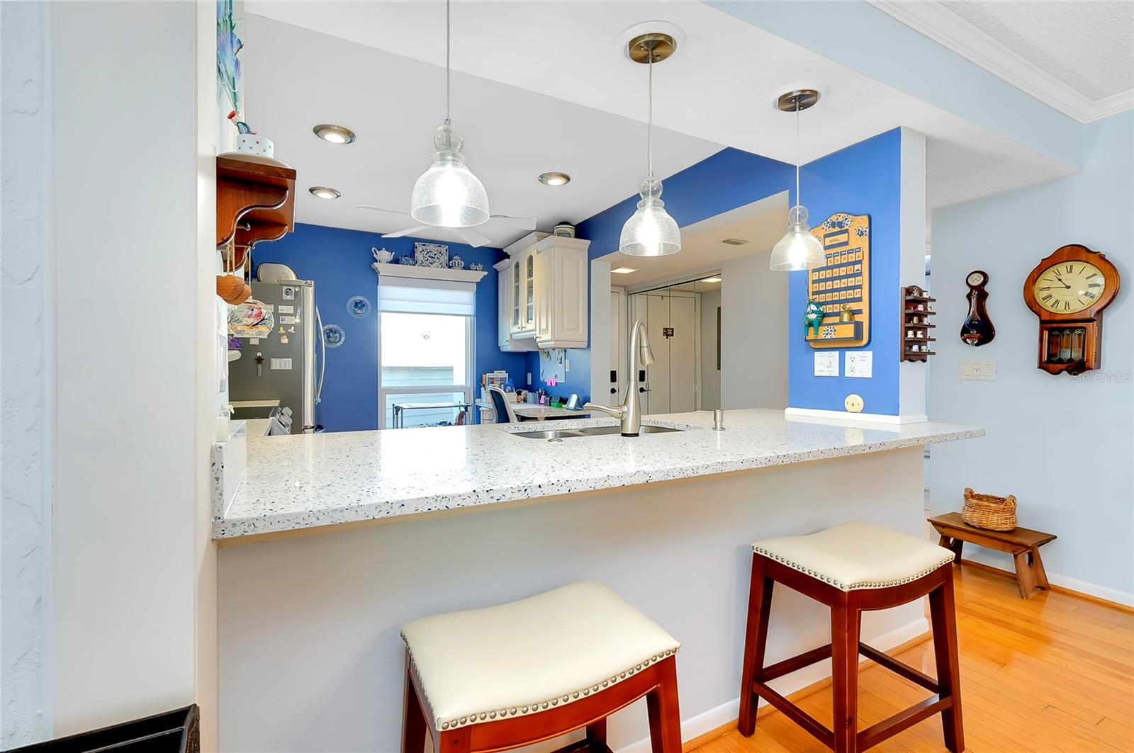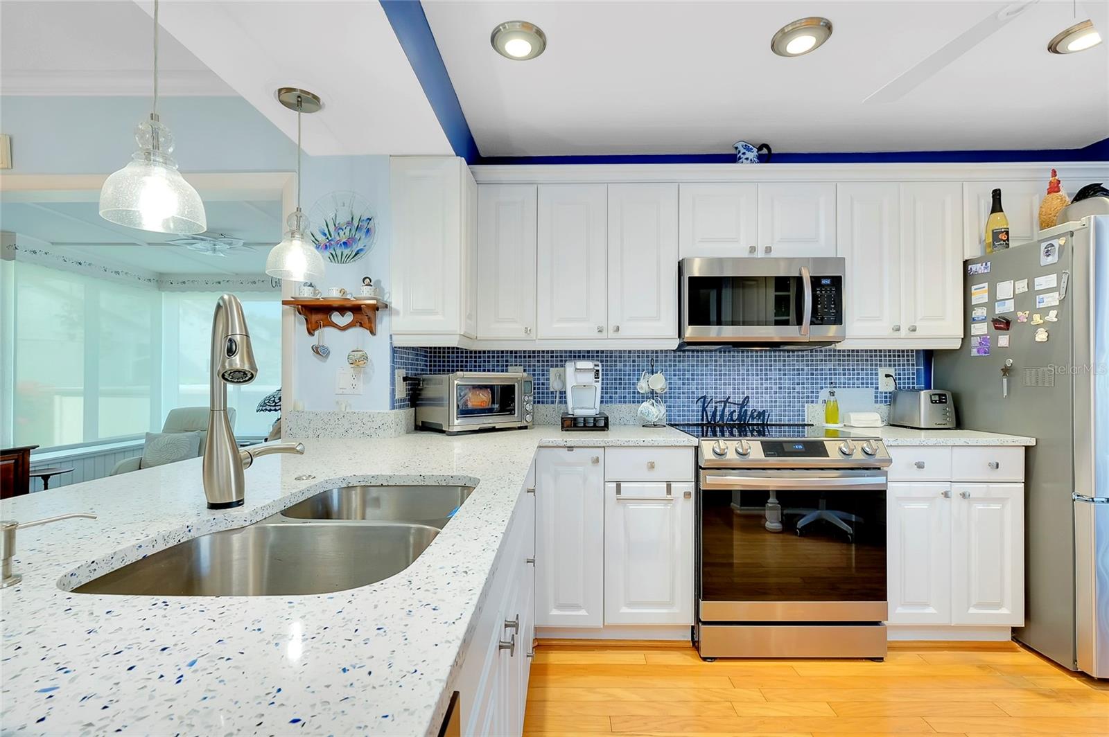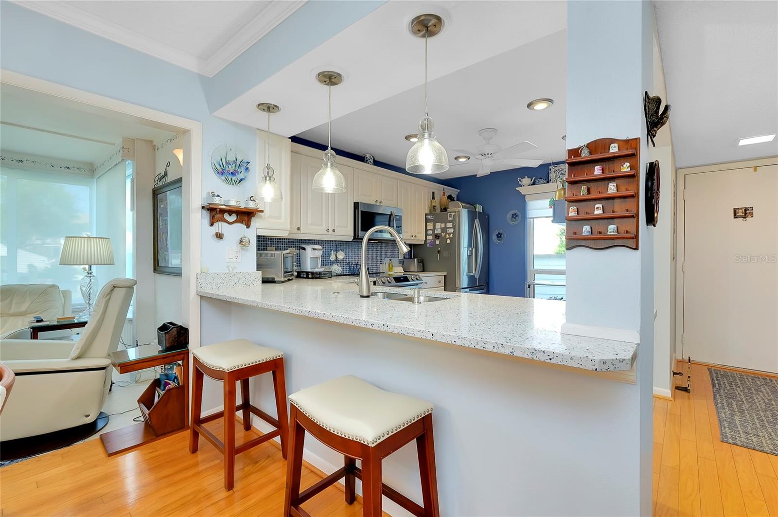 PublicRemarks:-BEAUTIFUL UPDATED FIRST FLOOR CONDO Spacious 2 bedrooms, 2 bathrooms nestled within Bird Bay Village offers a serene view steps away from the community pool. The bright and airy 2020 updated kitchen boasts stainless appliances with a colorful Corian countertop and built-in desk. The living space offers a cozy retreat of relaxation or entertaining with an Open Floor Plan dining room, living room combo with beautiful hardwood floors. Enjoy the lanai overlooking the mature landscape with all the sunlight pouring in through the sliders. The newly carpeted primary bedroom is equipped with a walk-in closet in addition to an ensuite with walk-in tiled shower, updated vanity and sink. Your guest will enjoy the guestroom complete with a Murphy bed and built in desk. The second bathroom has been updated with new vanity and sink. Enjoy your coffee in the sunny Florida Room with lots of sunlight. Added features include 2020 installed Hurricane windows and electric shades throughout the condo. Sliding doors leading to an outside deck surrounded by greenery make it a perfect retreat. The AC was replaced in 2020. Outside, residents can enjoy various amenities for outdoor living, from swimming in the pool to playing pickleball. The convenient location to the Island of Venice only 2 minutes away is a perfect blend of comfort and leisure in a charming setting. Adjacent to Bird Bay Village is the Legacy Trial, a dedicated bike path that extends all the way to Sarasota. Bird Bay also features a state- of- the -art fitness center, library and clubhouse. Enjoy the tennis courts and swimming pool, shuffleboard and bocce courts. No need to ever leave the property! Come for a visit, stay for a lifetime. InteriorFeatures:-Ceiling Fans(s), Eat-in Kitchen, Living Room/Dining Room Combo, Open Floorplan, Primary Bedroom Main Floor, Solid Surface Counters, Solid Wood Cabinets, Thermostat, Walk-In Closet(s), Window Treatments Directions:- US 41 Bypass heading South, turn left onto Bird Bay Dr. Follow until you see Bird Bay Way on your left. Turn left onto Bird Bay Way unit 838 is located on the left first floor. Appliances:-Dishwasher, Disposal, Dryer, Electric Water Heater, Exhaust Fan, Microwave, Range, Range Hood, Refrigerator