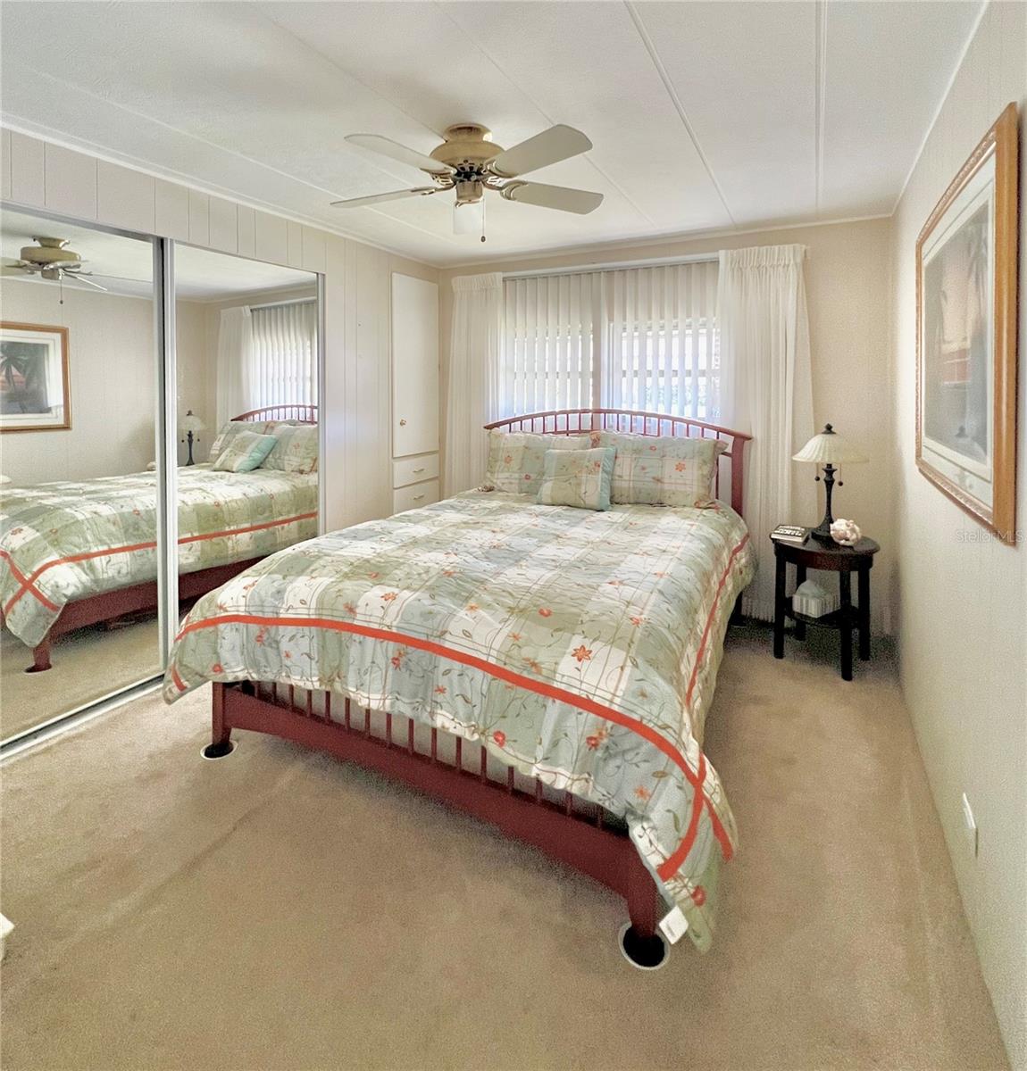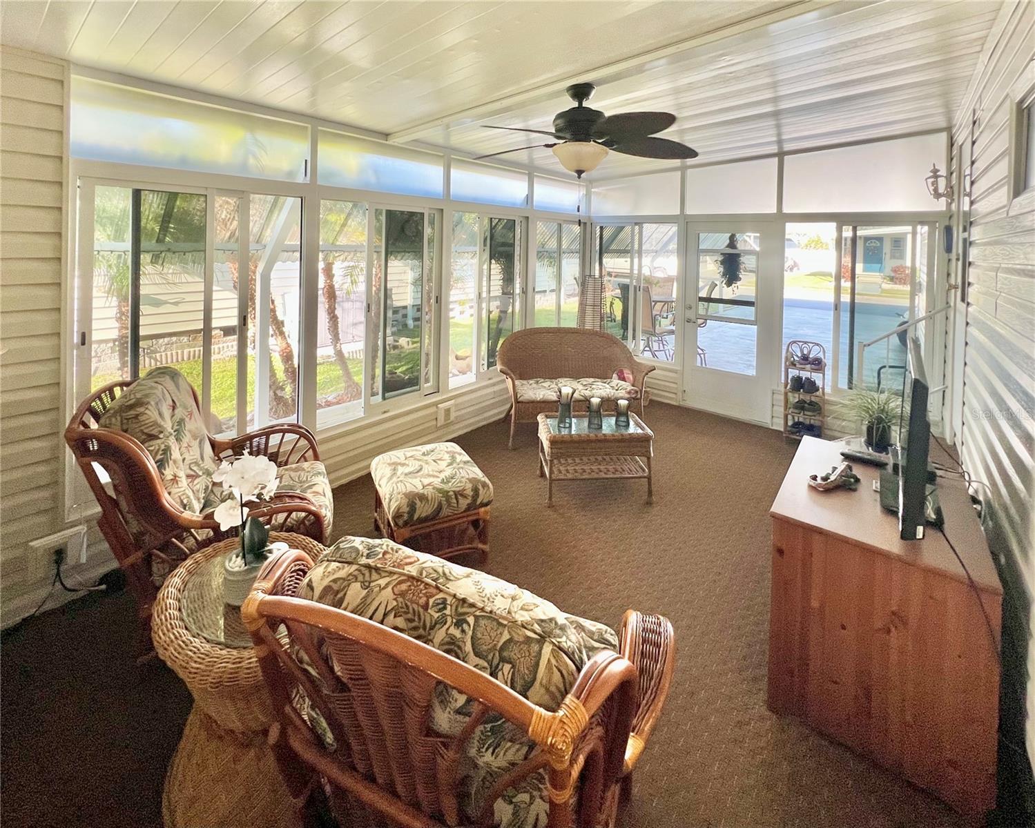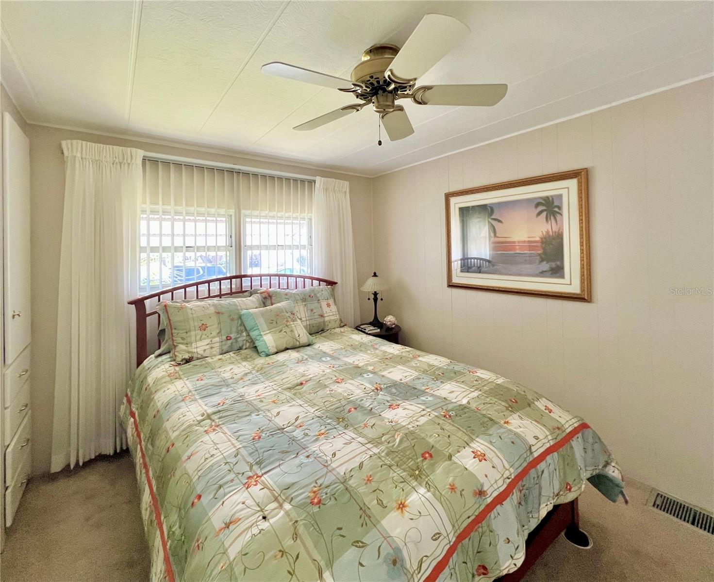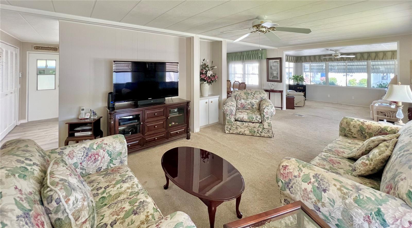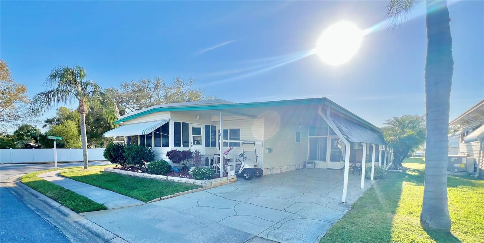 PublicRemarks:-Welcome to this charming 2-bedroom, 2-bathroom home, ideally located on a desirable corner lot in the pet-friendly area of Fairway Village. Situated on the first street for easy access in and out of the community, this home offers a fantastic location with only one neighbor to the side and one behind, ensuring privacy and peace. The community allows one pet up to 45 lbs, making it a perfect fit for pet owners. With great curb appeal, a spacious long driveway that can accommodate two cars, and the added bonus of your very own golf cart, this home is ready to welcome you. Hurricane shutters provide extra peace of mind, while the interior remains bright and airy. The home features a roof over, Vinyl siding and luxury vinyl flooring in some areas, with the majority of the home boasting well-maintained carpet in excellent condition. The front Florida room has been seamlessly integrated into the living space by the previous owner, expanding the heated and cooled area to an impressive 1,352 sq. ft. The large eat-in kitchen comes with updated appliances, including a nearly new dishwasher and washing machine, both less than two years old. For those seeking privacy, the enclosed lanai under the carport offers a serene retreat. Surrounded by lush Florida palms and featuring Tommy Bahama furniture, this space provides the perfect place to relax and unwind. The home comes fully furnished with everything you need, including a second refrigerator in the shed and stand-alone freezer inside the house. Freshly painted throughout with updated fixtures in both bathrooms, this home is move-in ready, offering flexible closing dates to suit your needs. The sellers have lovingly maintained the property over the years, ensuring it’s in excellent condition. Don’t miss this incredible opportunity to own your own piece of paradise! Fairway Village offers exceptional value with a low HOA fee of $401 per month, covering water, sewer, garbage, lawn maintenance, Spectrum internet, and basic cable. The gated community provides security, and pride of ownership is evident throughout. The newly built clubhouse, which opened in 2022, hosts a variety of social activities, including golf, shuffleboard, billiards, and over 50 additional events. With its prime location, excellent amenities, and a well-maintained environment, this home presents an affordable living opportunity in a welcoming community. Schedule your showing today and experience the charm of Fairway Village! InteriorFeatures:-Built-in Features, Ceiling Fans(s), Eat-in Kitchen, Living Room/Dining Room Combo, Open Floorplan, Thermostat, Walk-In Closet(s), Window Treatments Directions:- Off Belcher Turn into Fairway Village. Gate is open during the day. Enter through gate and take the first left to the very end corner lot on the right is this unit #109. Appliances:-Dishwasher, Disposal, Electric Water Heater, Microwave, Range, Range Hood, Refrigerator, Washer