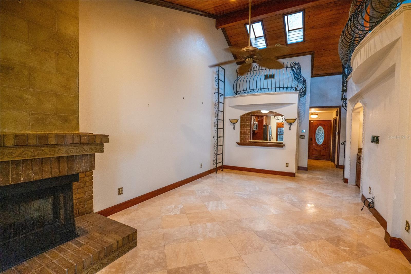 PublicRemarks:-For a complete REAL walk through of this home find the Video or Virtual Tour button somewhere on this page! Picture yourself enjoying your morning coffee and evening cocktails with a magnificent lakefront view. The setting of Spring Lake combined with the desirable area of Dr. Phillips makes this hidden gem the perfect retreat. Don’t miss this rare opportunity to own a piece of paradise at Spring Bay Villas, a gated enclave with a serene location with 14 private units. This elegant three-bedroom, two-bathroom custom villa welcomes you with a private entry and charming, gated courtyard. As you enter the home, you are immediately embraced by an ambiance of warmth and openness, showcasing the vaulted Tongue and Groove wood ceilings, travertine flooring on point, and custom decorative iron railings. The kitchen culinary space is highlighted by wooden cabinetry with elegant crown molding, complemented by modern stainless steel appliances and granite countertops. Above, a tray ceiling, also finished with crown molding, adds a layer of sophistication, while a distinctive brick wall infuses a touch of old-world allure. This kitchen is not just functional, but also serves as a stylish gathering place, featuring a convenient kitchen bar and a cozy nook for casual dining. The transition to the formal dining area is seamlessly facilitated by French doors, revealing a room with polished wood flooring, ready to host memorable dinners. The expansive living room adorned with a classic brick fireplace and further enhanced with decorative etched designs over the wet bar, and curved walkways is a focal point of relaxation and entertainment. Therma pane skylights are strategically placed to bathe the room in natural light creating a welcoming environment. The elevated landing area with a rod iron ladder is designed to inspire creativity. This space with its surround, offers the unique opportunity for it to be transformed into an art studio or for creative activity. Enjoy the comfort of the spacious first-floor primary suite with double-door entry, vaulted ceilings, a sitting area, walk-in closet, and lake view. The primary bath has dual sinks with granite counters, wood cabinets, and a steam walk-in tile shower with a seat. The second bedroom is also conveniently located on the first floor. The guest bath has a tile shower and a jetted tub. A spiral staircase takes you up to the third loft-style bedroom with wood flooring and an elevated view of the lake. Unwind in the appointed sitting area that leads you to the enclosed Three Seasons Patio with a lake view and Dr. Phillips skyline. These units just received a brand-new metal roof with a beautiful tile look. The serene neighborhood is surrounded by everything you can ask for, restaurants, shopping, Universal Studios, Sea World, Icon Park, Walt Disney World and so much more. With its prime location, this property offers the perfect blend of leisure, entertainment, and everyday living all while enjoying effortless comfort. InteriorFeatures:-Cathedral Ceiling(s), Ceiling Fans(s), Crown Molding, Eat-in Kitchen, High Ceilings, Open Floorplan, Primary Bedroom Main Floor, Solid Wood Cabinets, Split Bedroom, Stone Counters, Thermostat, Vaulted Ceiling(s), Walk-In Closet(s), Wet Bar Directions:- From Dr. Phillips Blvd., turn on Harlie St., then a right on to Mabel Louise Ln., and continue until you approach the Spring Bay Gate Appliances:-Dishwasher, Microwave, Range, Refrigerator