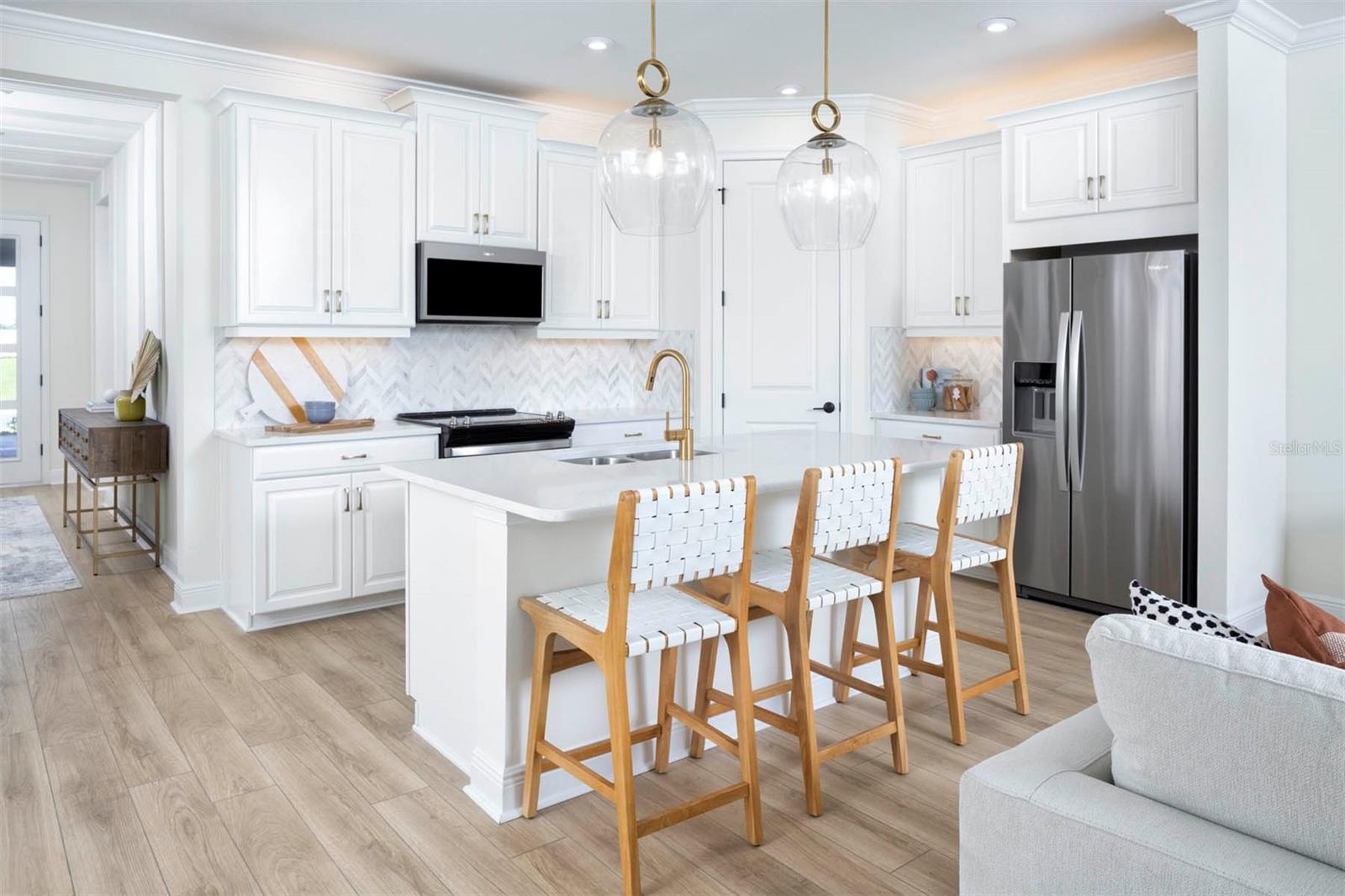 PublicRemarks:-Pre-Construction. To be built. From the front porch to the back lanai, the 2,005 sq. ft. Glades floorplan has indoor and outdoor living space to spare. This well appointed home offers 4 bedrooms, 3 full baths and a 2-car garage. Masterfully arranged rooms around an open-concept central living area provide the ideal home for entertaining or simple relaxing. The L shaped kitchen offers 42" upper cabinets on two walls and a strategically placed island with a flush breakfast bar. It includes all appliances, with a gas stove that offers 7 different functions, perfect for those who love to cook. The corner pantry is spacious enough to house small appliances as well. The owner’s suite has its own luxurious bath and a large walk-in closet. Bedrooms 2 and 3 are located at the front of the home, just off the foyer, for maximum privacy. There is a full bath in between them for ease of use. On the opposite side of the foyer is a 4th bedroom and third full bath with shower. Perfect space for guest, in-law suite or teen suite. There is an oversized lanai on the rear of the home that overlooks the tranquil pond behind the home. It is spacious enough for a space to dine al fresco and have a nice sized lounging area. It is accessible from the great room through the upgraded 12' glass sliders, making easy to make it part of the living space. It will include a pool with built in spa, paver surround and screened in. Designer appointments are yet to be chosen. Offering of wood 42" upper cabinets, quartz countertops, a variety of appliances, flooring, paint and more. Renderings and plans are for illustrative purposes only and should never be relied upon and may vary from the actual home. Pricing, dimensions and features can change at any time without notice or obligation. Home is pre construction. Photos are from a model home and not the home offered for sale. InteriorFeatures:-Eat-in Kitchen, In Wall Pest System, Open Floorplan, Pest Guard System, Primary Bedroom Main Floor, Solid Surface Counters, Thermostat, Tray Ceiling(s), Walk-In Closet(s) Directions:- South 75 to exit 191- River Road and CoolToday Park. Take a right at the stop sign. You will travel approximately 3.9 miles down N River Road till you come to a red light at West Villages Parkway. Take a right at the light. Take the second exit on the roundabout and stay straight on West Villages Pkwy through the large intersection. Stay straight at the stop sign and pass the stadium. Lakeside will be on the right, before you reach Brightmore on left. Sales are being handled at Sunstone at Wellen Park. Appliances:-Dishwasher, Disposal, Dryer, Gas Water Heater, Microwave, Range, Refrigerator, Washer