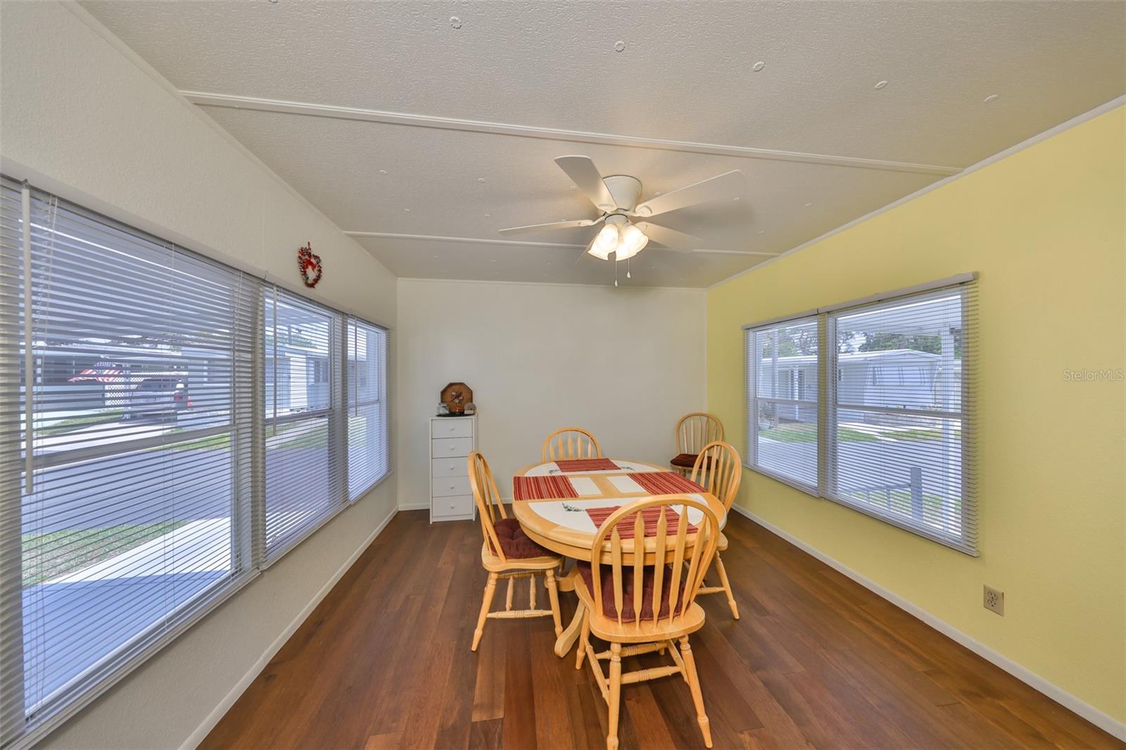 PublicRemarks:-PRICED TO SELL. This UPDATED and well-maintained Mobile Home with its LARGE ROOM ADD-ON with shiplap paneling, comes FULLY FURNISHED in a NON-FLOOD ZONE and with NO LOT RENT! Located in desirable and quaint Lake Placid M/H Park; a 55+ RESIDENT OWNED COMMUNITY, this CORNER LOT home features a newer Roof (December 2021), HVAC 2020, and a new natural gas range cooktop and microwave. The spacious and comfortable floor-plan integrates the living areas seamlessly. COMMUNITY BENEFITS: LOW HOA fee of $300 includes: Cable, Internet, Water, Trash, and Grounds Maintenance. Enjoy the serene natural setting of the community’s private lake, perfect for kayaking, fishing, or paddle boating. Located just a few miles from the beautiful Gulf beaches, the property is also close to restaurants, the Pinellas Bike Trail, golf courses, shopping malls, and public transportation. BONUS: No flood insurance required! JUST A FEW MILES FROM OUR BEAUTIFUL BEACHES, Lake Placid M/H Park is close to the Pinellas Trail, golf, shopping, library, beaches, restaurants and public transportation. Price includes one Share in this resident-owned community. LOW MONTHLY HOMEOWNER'S FEE of only $300 per month! InteriorFeatures:-Ceiling Fans(s), Primary Bedroom Main Floor, Solid Surface Counters, Thermostat, Window Treatments Directions:- From East Bay Drive turn right on Clearwater- Largo Rd to right turn on 10th Ave NW into Lake Placid Park (North Drive) down to East Drive. House is located on the corner of East Drive and North Drive. Appliances:-Built-In Oven, Cooktop, Dryer, Electric Water Heater, Exhaust Fan, Microwave, Range Hood, Refrigerator, Washer