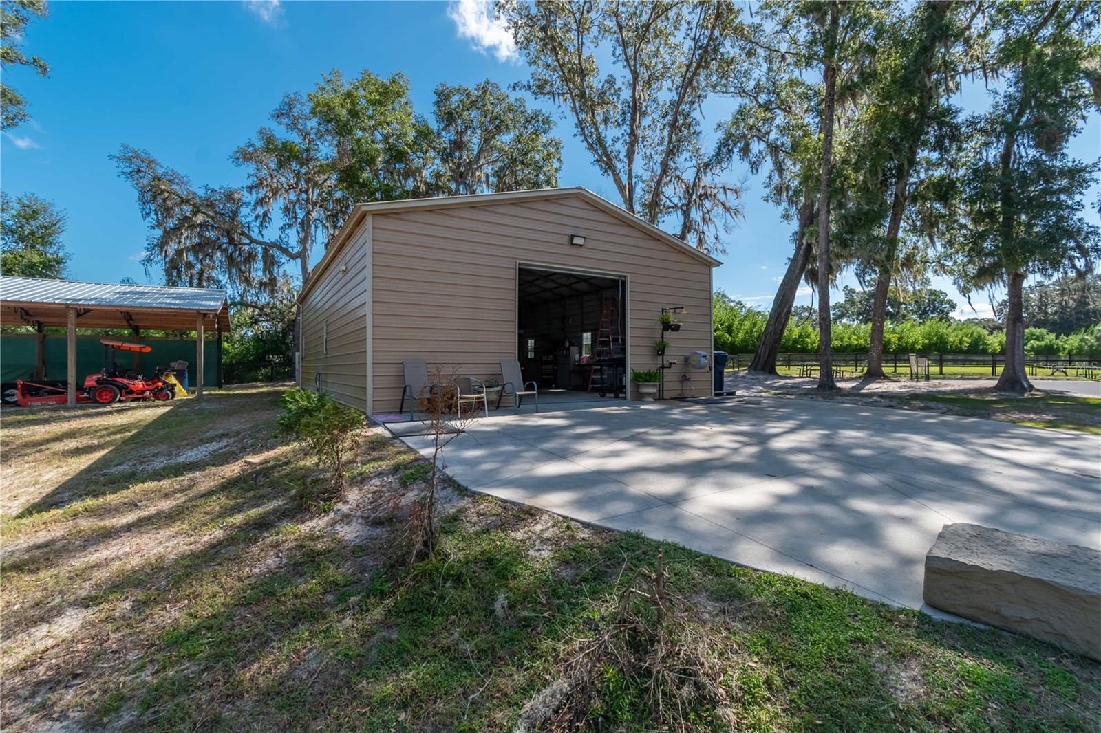 PublicRemarks:-Welcome to the perfect canvas for your dream farmstead! This 24+ acre property, located in the picturesque countryside of Micanopy, offers endless possibilities for creating your ideal Central Florida farm. Enclosed by top-board-and-wire fencing and featuring a solar-powered gated entry, this land promises both security and scenic beauty. Majestic oak trees provide gentle shade throughout, while the landscape itself offers both gentle rolling and flat terrain— ideal for building your custom home from the ground up. On the property, a 1,500 sq.ft. steel equipment building awaits, complete with an office, full bathroom, and window-unit AC for comfort. The office is outfitted with a washer, dryer, and refrigerator, making it a functional space for daily use. A nearby pole barn offers covered parking adjacent to the main building, while an additional shed shelters the well and water softener. These existing amenities make it easy to live on-site, whether you’re staying in an RV during construction or need extra storage for equipment and supplies. Outdoor enthusiasts will appreciate the property’s close proximity to a variety of nearby state parks, lakes, springs, and campgrounds—ideal for hiking, fishing, or simply soaking in the natural beauty of North Central Florida. Conveniently located between Gainesville and Ocala, you’re never far from the shopping, dining, and entertainment these vibrant cities have to offer. Whether you're looking to build a farm, estate, or peaceful country getaway, this property is a rare opportunity to bring your vision to life in one of Florida’s most tranquil settings. Directions:- NW HWY 329 to NW HWY 320, TURN RIGHT to property on the left.