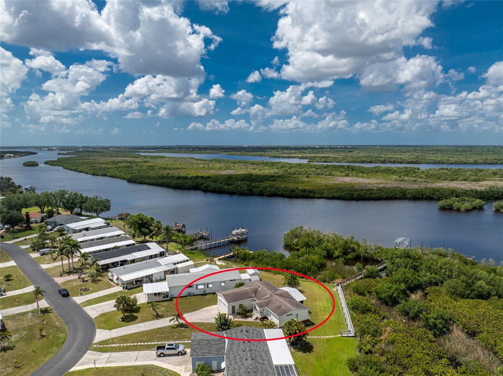 PublicRemarks:-This Siesta Key 2000-built waterfront manufactured home offers 1,755 sq ft of living space, featuring 3 bedrooms, 2 bathrooms, and an office/den. The open-concept design includes a great room and an eat-in kitchen, providing a spacious and inviting atmosphere. Additional amenities include a screened porch, a 2-car garage, and a 14-foot riverfront dock, perfect for boating enthusiasts. Located in a 55+ community, residents can enjoy access to a clubhouse, pool, 9 hole golf course and a small boat ramp enhancing the overall living experience. There is also an adjacent landowner that allows residents to store boats, RV's, and trailers on the property adjacent to the pool parking lot at no extra charge. What a life, leave the cold north in your RV, drive to Huntercreek, park your Rv and live in your home with river access, fishing and golfing, this is your opportunity to enjoy the best of both seasons! InteriorFeatures:-Cathedral Ceiling(s), Ceiling Fans(s), Eat-in Kitchen, L Dining, Living Room/Dining Room Combo, Open Floorplan, Split Bedroom, Window Treatments Directions:- Travel east on Duncan Rd (Hwy 17)turn left on Palm Shores Blvd. right on Hunter Creek Dr. left on Ibis Ct. home is on the right. Appliances:-Dishwasher, Dryer, Microwave, Range, Range Hood, Refrigerator, Washer