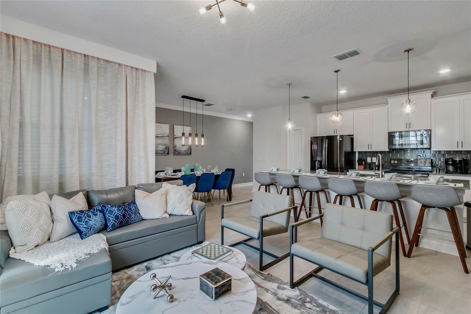 PublicRemarks:-This professionally designed upscale vacation home offers an exceptional investment opportunity in Champions Gate Resort. This stunning furnished four-bedroom, three-bathroom townhome features a private pool, combining luxury, comfort, and convenience. The first floor boasts a spacious living area, perfect for entertaining or unwinding, along with an upgraded kitchen featuring GE Profile appliances and premium cabinetry. Sliding glass doors open to a screened-in patio and private pool, providing a serene outdoor retreat to bask in the Florida sunshine. The well-designed floor plan includes a convenient downstairs bedroom and full bathroom, while the master suite and two additional bedrooms are located upstairs. Residents enjoy access to The Retreat Club, just a short walk away, offering a public pool, water slides, beach volleyball, and a bar. Additionally, the renowned Oasis Clubhouse, one of the best in the greater Orlando area, features a restaurant, bar, fitness center, cinema, game room, and an incredible resort-style pool area complete with a water playground, massive swimming pool, and a relaxing lazy river. Ideally located with easy access to Disney World and Orlando’s top attractions, this home is the perfect choice for vacationers and investors seeking a premier resort-style living experience. Some furniture may have been updated. Room measurements are approximate. InteriorFeatures:-Eat-in Kitchen, In Wall Pest System, Kitchen/Family Room Combo, Living Room/Dining Room Combo, Primary Bedroom Main Floor, PrimaryBedroom Upstairs, Stone Counters, Thermostat, Walk-In Closet(s), Window Treatments Directions:- I4 to exit 58. West on Champions Gate Blvd to Ronald Reagan Blvd. Turn right and continue to US 27 North. Right on Bella Citta Blvd, right on Westside Blvd, left on Leopard Creek Dr, left on Challenge Dr. Appliances:-Dishwasher, Disposal, Dryer, Electric Water Heater, Freezer, Ice Maker, Microwave, Range, Refrigerator, Washer