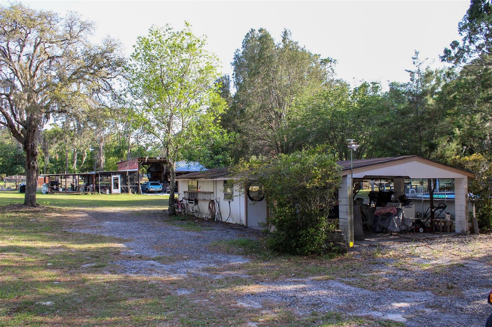 PublicRemarks:-Discover your private retreat on this unique 4.75-acre estate in the heart of Spring Hill! This charming 3-bedroom, 3-bathroom property offers a blend of comfortable living and exceptional outdoor amenities perfect for equestrian enthusiasts, hobby farmers, and those who love to entertain. The property boasts two separately fenced paddocks, ideal for horses, goats, chickens, or other animals. Multiple outbuildings provide endless possibilities for storage, workshops, entertaining, animal shelter or even creating your own personalized spaces. Imagine a screened-in party room for gatherings, a dedicated workshop for your projects, or ample storage for all your equipment. A convenient carport offers covered parking. Covered RV storage and an RV hookup adding even more versatility for visitors or your own adventures. Mobile home on property used for storage. Enjoy the Florida sunshine in your above-ground pool, complete with an attached covered deck – the perfect spot for relaxing poolside or hosting summer barbecues. No HOA Located in a prime Spring Hill location, you'll appreciate the tranquility of acreage living while being just minutes away from the Suncoast Parkway (589) for a quick commute to Tampa. Enjoy the convenience of nearby shopping, diverse dining options, and various entertainment venues. Nature lovers will enjoy the close proximity to the famous Weeki Wachee Springs State Park, where you can swim/kayak/paddleboard in crystal-clear waters and see the iconic mermaid shows. Don't miss this incredible opportunity to own a versatile property with room to roam and grow in a fantastic location! InteriorFeatures:-Ceiling Fans(s), Eat-in Kitchen Directions:- County Line, to Shady Hills Rd, To Caldwell Ln Appliances:-Dishwasher, Range, Refrigerator