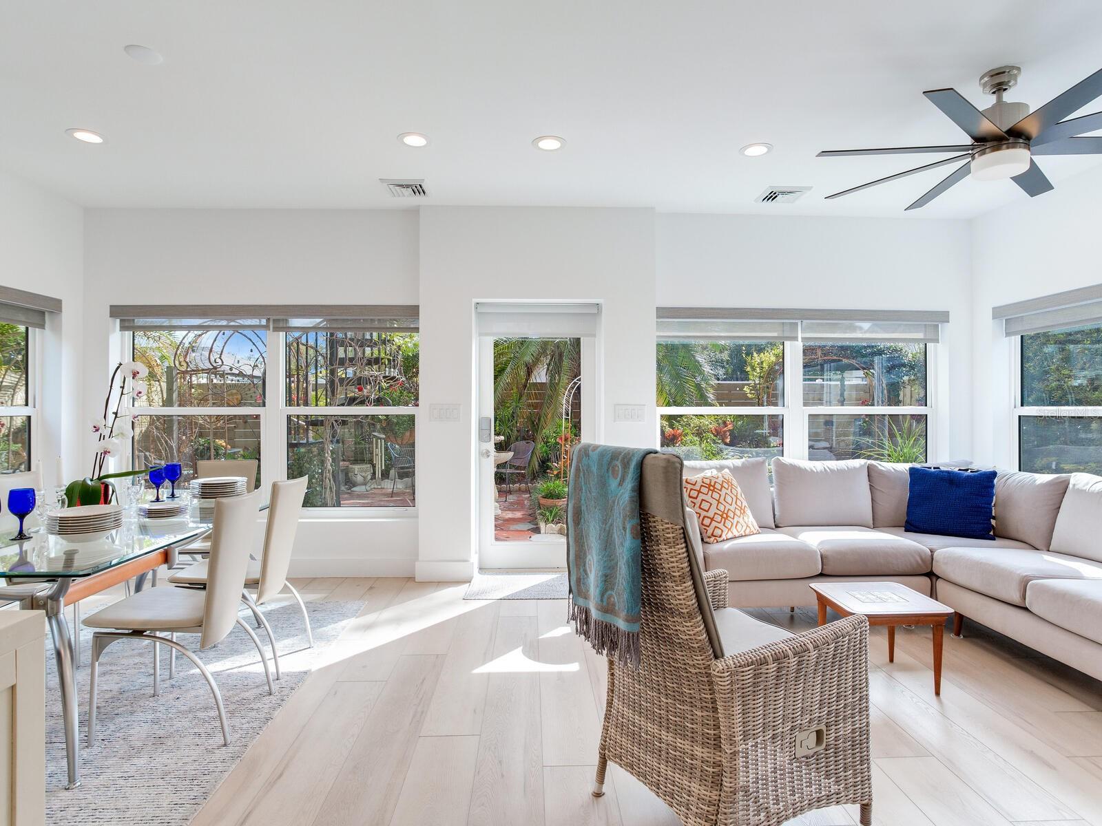 PublicRemarks:-Don’t miss your opportunity to live in Historic Old Northeast, St Petersburg, just 2 blocks from Coffee Pot Bayou, but - NO DAMAGE FROM HURRICANES and NO FLOOD INSURANCE REQUIRED - this block-constructed home is in FEMA flood Zone X. Do you know that this part of 22nd Avenue is residential and only 2 lanes? Evenings are quiet and perfect for strolling through the Old Northeast and along the waterfront. Completely renovated and updated mid-century modern home, also with a new construction (built in 2018) 2 story addition which includes a light and bright sunroom on the 1st floor and a spacious 2nd floor en-suite 3rd bedroom/in-law suite/studio ‘apartment’ living area with its own mini-split central AC system - both spaces overlook a lush “English” style garden. You really must see the inside and fenced garden area to fully appreciate this well-maintained home. Nearly 2000 square feet of living space. 3-bedrooms, 3-full bathrooms, 1-car attached garage, fenced back yard, and circular brick paver driveway in front of the home. As soon as you step in the front door you are sure to be surprised and will appreciate the large, bright and open living area which includes the living room, kitchen, dining space, and separate sitting/reading area. The primary bedroom on the first level opens via French doors onto the spacious sunroom. Relax in this sunlit room, enjoy the quiet and view of a beautiful garden. And, there is still room for a pool. The 2nd story of the addition is perfect for working professionals who need a separate quiet space – or, if you are looking for income potential, this property qualifies for having a long-term rental unit (ADU, Accessory Dwelling Unit). Nothing to do now except move in. Clarification Note: County records indicate 1905sf of living space. Square footage of living space as provided by owner: 1933sf. InteriorFeatures:-Ceiling Fans(s), Living Room/Dining Room Combo, Open Floorplan, Primary Bedroom Main Floor, Thermostat, Window Treatments Directions:- I-275 to 22nd Ave N exit. Proceed East past 1st Street N. Home is on right (South) side of 22nd Ave NE. Park in paverbrick half-circle driveway, or on Oak Street, which is at end of same block/one house away from property. Appliances:-Convection Oven, Dishwasher, Disposal, Dryer, Exhaust Fan, Gas Water Heater, Range, Range Hood, Refrigerator, Tankless Water Heater, Washer