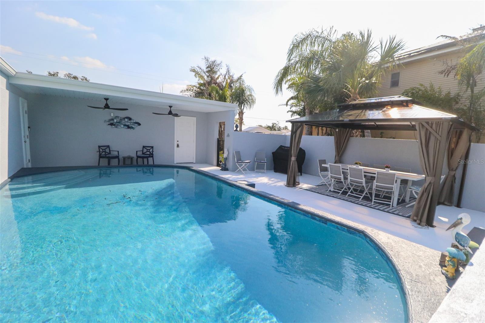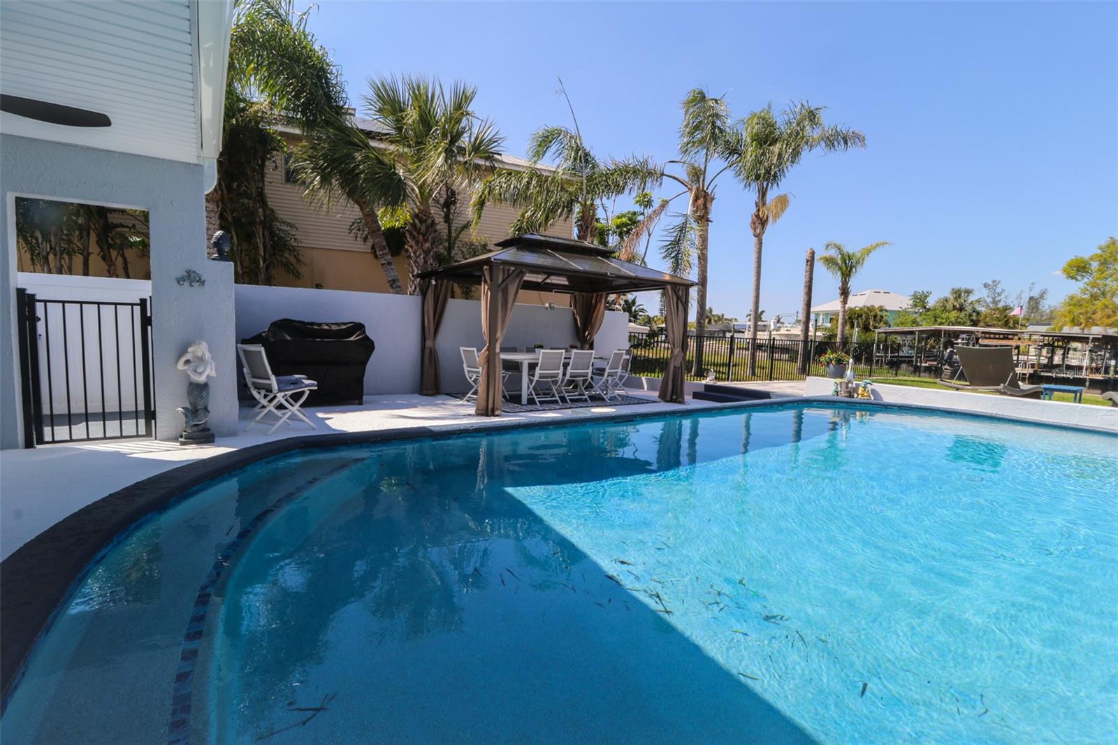 PublicRemarks:-WATERFRONT Fully renovated pool house with state-of-the-art boardwalk and seawall completed in 2024! 4 bedrooms and 3 baths attached to a 2 car garage with no HOA fees. Formal living room and additional family room. Step through the beautiful double-door front door to your luxurious dream home through a family room that flows into the formal dining room that features a wine cooler and bar with soft-close cabinetry and counter space for entertaining. The luxury kitchen features a bar with seating, a deep stainless-steel sink and extended gooseneck to fill large pots, stove top with dual heating options, a built-in microwave and convection and regular oven, and a smart refrigerator that speaks to you. The living room has cozy seating off the kitchen with space for an office workstation or eat in kitchen seating area and features a stone electric fireplace. Dual ceiling fans and LED recessed lighting throughout. The laundry room has a smart washer and dryer with extra counter space with dual folding drawers for extra storage and a deep sink. Roof, water heater, air conditioning and pool rebranded in 2022 with a new pool pump in 2024. Screened backyard Patio to sit and watch the water and a fully fenced backyard with side access to store a boat or RV trailer. Enjoy the pool and gazebo for outdoor entertainment and relax on the deck to watch the sunset. Bring your boat with easy access to Tampa Bay -15 minutes away or simply cast the fishing line from the new seawall built in 2024 or bring the Kayaks or Jet skis. The backyard has been landscaped to include a 4-foot wide paver walkway with lighting from the pool deck to the new composite dock. Enjoy a fire pit with a cobblestone walkway and an extra-large grass lawn for play or pets to enjoy. Rented as an AirBnB most of the year. All information regarding school zones must be verified. The owner is a licensed real estate broker InteriorFeatures:-Ceiling Fans(s), Crown Molding, Eat-in Kitchen, Living Room/Dining Room Combo, Open Floorplan, Primary Bedroom Main Floor, Solid Surface Counters, Split Bedroom, Thermostat, Walk-In Closet(s), Window Treatments Directions:- From I75 N. Take exit 240 toward Ruskin for 1/2 mile turn left onto College Ave E for 3.2 miles then turn right onto US Hwy 41 for 1/2 mile and turn left onto Shwll Point Rd for .6 miles then turn left onto 7th St. NW for .1 mile turn right onto Blue Heron Blvd for .2 and home is on the right. From I 75 S. Take exit 240 Toward Ruskin for onto College Ave E for 3.2 miles then turn right onto US Hwy 41 for 1/2 mile and turn left onto Shell Point Rd for .6 miles then turn left onto 7th St. NW for .1 mile turn right onto Blue Heron Blvd for .2 and home is on the right. Appliances:-Built-In Oven, Cooktop, Dishwasher, Disposal, Dryer, Electric Water Heater, Exhaust Fan, Microwave, Range Hood, Refrigerator, Washer, Wine Refrigerator