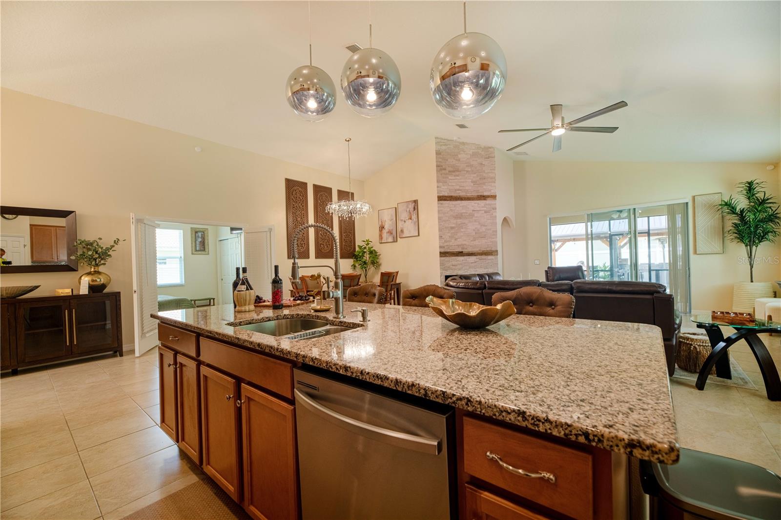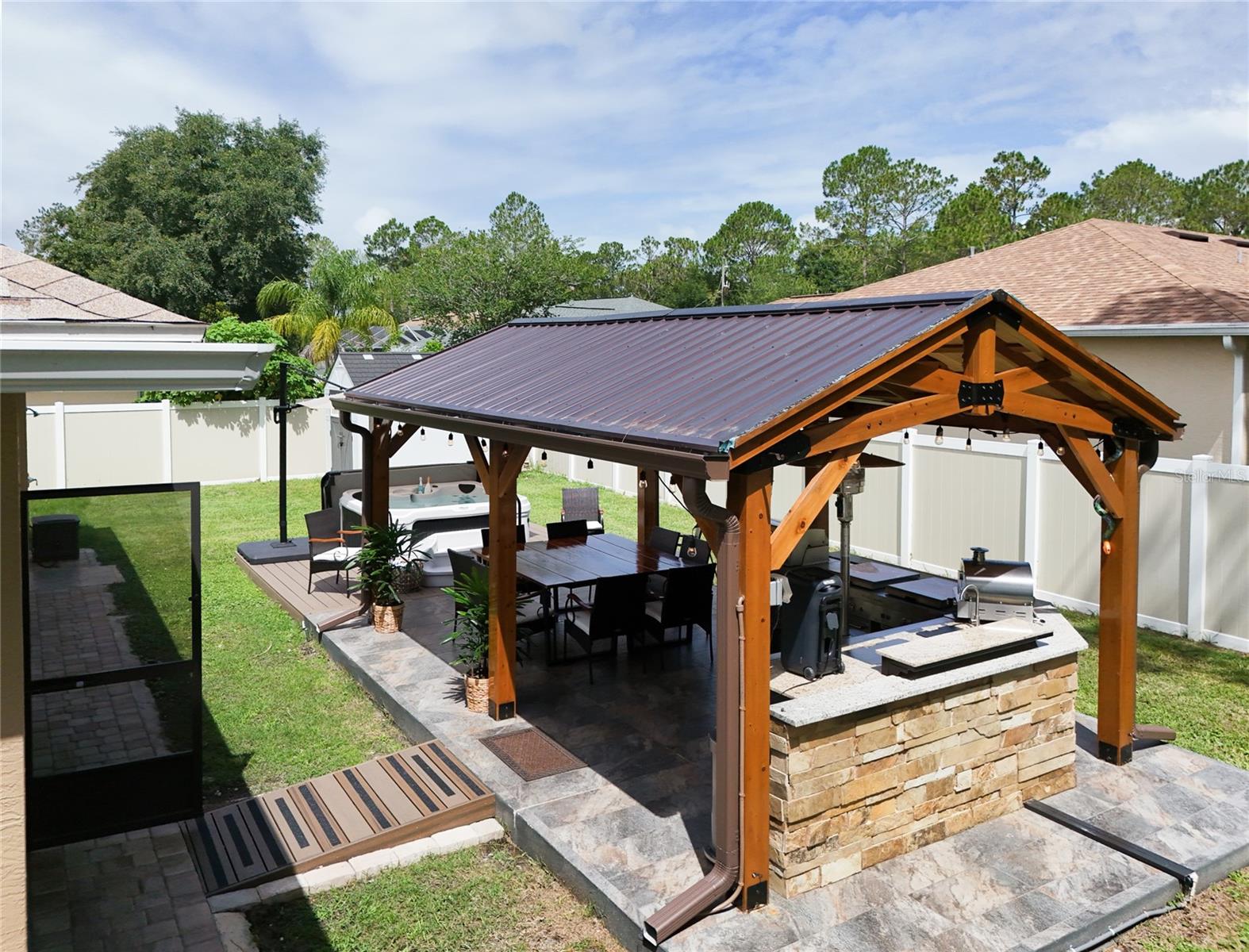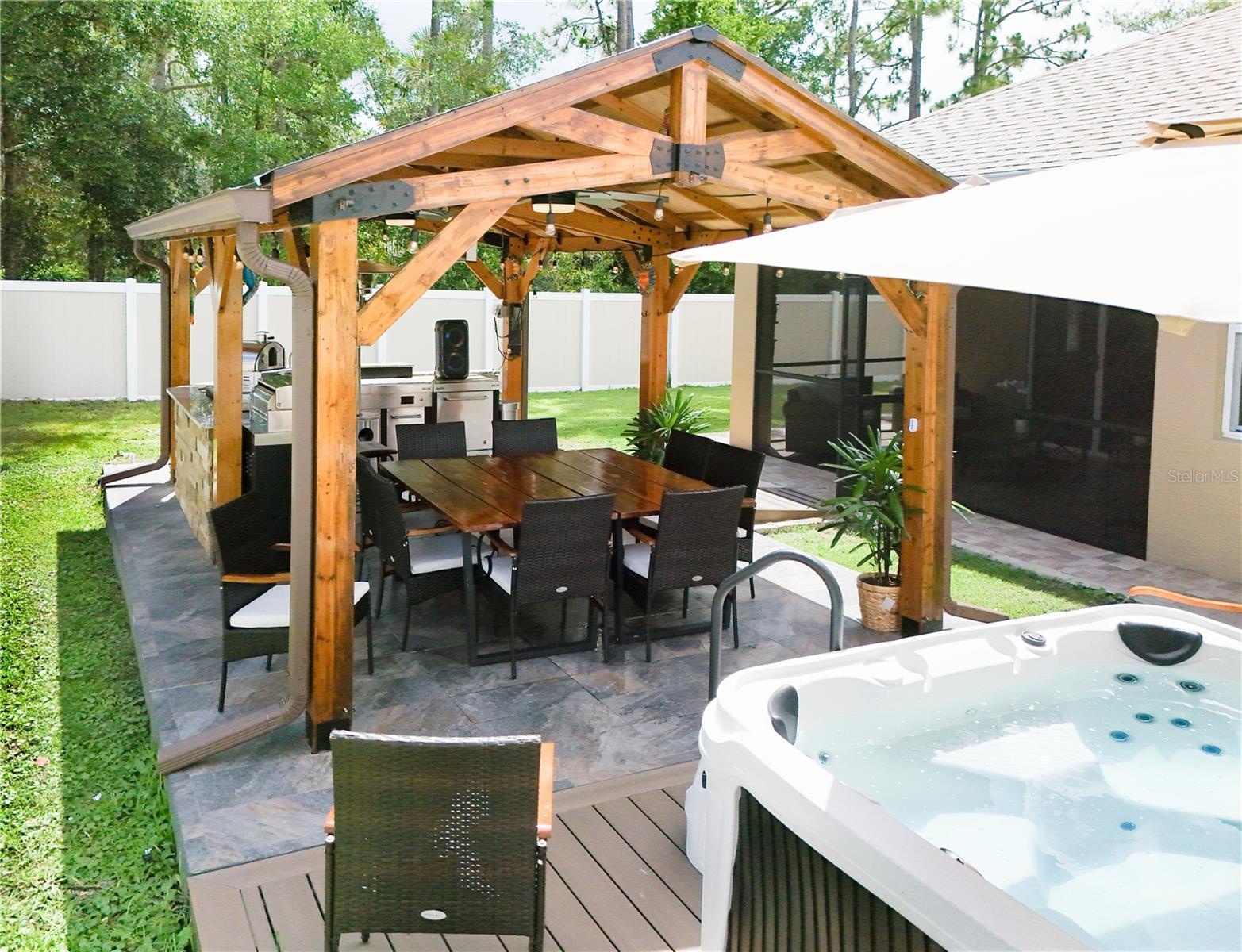 PublicRemarks:-Better than new: Move-in ready! Simply bring your belongings and your family and make this property your dream home. With just one key and one open door, you'll find everything you need... and more! This beautiful, move-in-ready home is packed with modern upgrades, elegant finishes, and incredible outdoor entertaining spaces. Best of all, it comes fully furnished. Just bring your clothes and start enjoying the lifestyle you deserve. Once you open the door, you'll find tile throughout the home for a sleek, modern look. Its open layout, high ceilings, and abundant natural light make the space feel even larger and more inviting. A glass chandelier (dining room), three glass pendant lights (kitchen area), a spacious granite countertop with seating for 5-6, and stainless-steel appliances make the kitchen even more elegant and inviting for enjoying a good meal with family and friends. It also includes three elegant glass chandeliers, one in each bedroom, a brand-new washer and dryer (2025), three sliding glass doors for seamless indoor-outdoor living, an electric fireplace, and much more. What could we possibly mention about the backyard? This private, fenced yard offers privacy and security, featuring a summer kitchen ideal for outdoor enjoyment, a private hot tub for your own relaxation space, and outdoor shower perfect for rinsing off and relaxing. fully enclosed lanai perfect for year-round outdoor enjoyment. Pavers around the house for a clean and polished exterior, a large cedar gazebo with two ceiling fans and lighting, and storage shed for added convenience. Gutters installed for proper drainage, accent lighting for landscaping, an irrigation system (municipal water). Upgraded garage floor with epoxy coating, an insulated garage door. The complete furniture package includes 4 televisions, 4 digital security cameras for your peace of mind, along with all the beautiful decoration. Whether you're looking for a primary residence, a vacation getaway, or a turnkey investment, this home offers comfort, style, and convenience, all in one beautiful package. Just bring your clothes and start living the lifestyle you deserve! Schedule your private showing today! Don't miss this opportunity-it won't last long on the market!!!All measurements are estimates only and should be verified by Buyer and/or Buyer Representative InteriorFeatures:-Accessibility Features, Cathedral Ceiling(s), Ceiling Fans(s), High Ceilings, Kitchen/Family Room Combo, Open Floorplan, Primary Bedroom Main Floor, Solid Wood Cabinets, Thermostat, Walk-In Closet(s) Directions:- Turn left or right onto Pine Lakes Parkway, depending on your starting direction. Continue on Pine Lakes Parkway and turn left onto the second Wynnfield Drive (there are two entrances to Wynnfield Dr, take the second one). Then turn right onto Waters Drive. Appliances:-Dishwasher, Disposal, Dryer, Electric Water Heater, Microwave, Range, Refrigerator, Washer