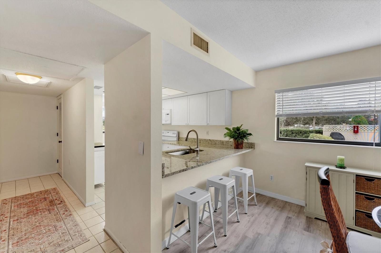 PublicRemarks:-Step inside this beautiful END UNIT to be greeted by neutral wall tones, an abundance of natural light, and stylish newer laminate flooring that together create a warm and inviting atmosphere. The beautifully updated kitchen is a chef’s dream, featuring shaker cabinets with soft-close functionality, granite countertops, newer appliances, and a single-bowl sink. Whether you’re preparing meals or entertaining, this space is as functional as it is stunning. Casual meals are perfect at the breakfast bar, while the separate dining area is ideal for hosting guests. The spacious living/family room easily accommodates ample furniture and gatherings, with sliding doors that lead to the lanai. The lanai provides practical features, including a laundry area on one end and storage on the other. The Owner’s Bedroom comfortably fits king-sized furniture, includes a generously sized walk-in closet, and features an en-suite bathroom for added privacy and convenience. A second bathroom and guest bedroom are thoughtfully positioned on the opposite side of the unit for maximum comfort. Additional upgrades include window blinds, ceiling fans, newer light fixtures, newer HVAC and water heater updates, enhancing the home’s modern appeal. The Villa D’Este community offers fantastic amenities, including a gorgeous pool, tennis courts, and designated parking, all designed for relaxation and convenience. Monthly fees cover water, sewer, and basic cable, making this home an excellent value. Nestled in the heart of Venice, this sought-after condo is just three miles from the Gulf of Mexico’s stunning beaches and the vibrant downtown area. Golf enthusiasts will love being steps away from Capri Isles Golf Club and Waterford Golf Club. Downtown Venice provides a delightful mix of boutique shopping, dining, and entertainment, including the renowned Venice Theatre, farmers' markets, art festivals, and more. Whether you’re drawn to relaxation, recreation, or culture, this home is perfectly positioned to let you enjoy Florida’s laid-back lifestyle. Don’t wait—whether you’re seeking adventure or tranquility, this exceptional residence is ready to exceed your expectations. Call today to schedule your private showing and make this beautiful condo your own! InteriorFeatures:-Ceiling Fans(s), Living Room/Dining Room Combo, Open Floorplan Directions:- From I-75 Jacaranda to roundabout, stay right to enter E. Venice Ave. Turn Right at the light to Capri Isles Blvd to right on Auburn Lakes Dr. to right into Villa D Este parking lot. US41 By-Pass take E Venice Ave. to left on Capri Isles Blvd. to right on Auburn Lakes Dr. to right into Villa D Este parking lot. Appliances:-Dishwasher, Disposal, Dryer, Electric Water Heater, Range, Range Hood, Refrigerator, Washer