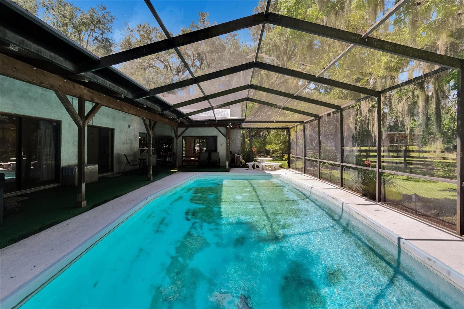 PublicRemarks:-Tucked away on 5.6 acres of beautifully landscaped and fully fenced land, this 3-bedroom, 2-bathroom ranch-style home offers 1,856 square feet of heated living space and the peace of true seclusion. A long paved driveway leads you through mature trees and into your own private oasis. Enjoy quiet country living with modern comforts including a refreshing in-ground pool, a cozy wood-burning fireplace, and a durable metal roof. The spacious layout includes a bright living area, well-appointed kitchen, and comfortable bedrooms. Outdoors, you'll find a dog run, plenty of room for gardening or hobbies, and space to roam. Located in the county with no HOA, this property offers the freedom and privacy you’ve been searching for—perfect for nature lovers, homesteaders, or anyone craving more space. InteriorFeatures:-Ceiling Fans(s), Kitchen/Family Room Combo, Open Floorplan, Primary Bedroom Main Floor, Solid Surface Counters Directions:- From I-4 and HWY 39, go south to east on Trapnell to home on North side of Rd. Appliances:-Dishwasher, Disposal, Electric Water Heater, Range, Refrigerator, Trash Compactor