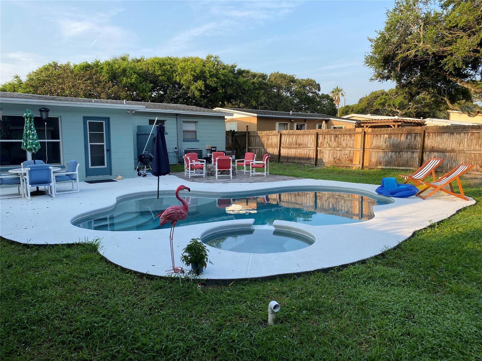PublicRemarks:-Discounted price of $3800 per month for October - December 2023 Monthly rate is $5000 for any other months. Flip Flop Flamingo is a lovely 3 bedroom, 1 1/2 bath beach bungalow close to the beach, Flagler Avenue with shopping, restaurants, entertainment and the Canal historical district. Centrally located on the paradise island of New Smyrna Beach with a large, fenced back yard and plenty of space for everyone and parking. Updated and tastefully decorated with a beachy vibe. Enjoy a master bedroom with a King size bed and two additional bedrooms with a queen size bed and another with full size bunkbeds. The living/kitchen area is an open floor plan with an additonal room with a large dining table, seating for 8, looking out over the back yard. There is a patio in the back yard with seating for 12, a BBQ and an outdoor shower. The kitchen is stocked with all the necessities, and the home has everything you will need to just bring your personal belongings and enjoy your beach vacation. Small dogs considered. Rents monthly. Directions:- Cross the south causeway continuiing onto 3rd Avenue going south. Turn right at Saxon Ave, left onto E11th Ave. The home is on the left.