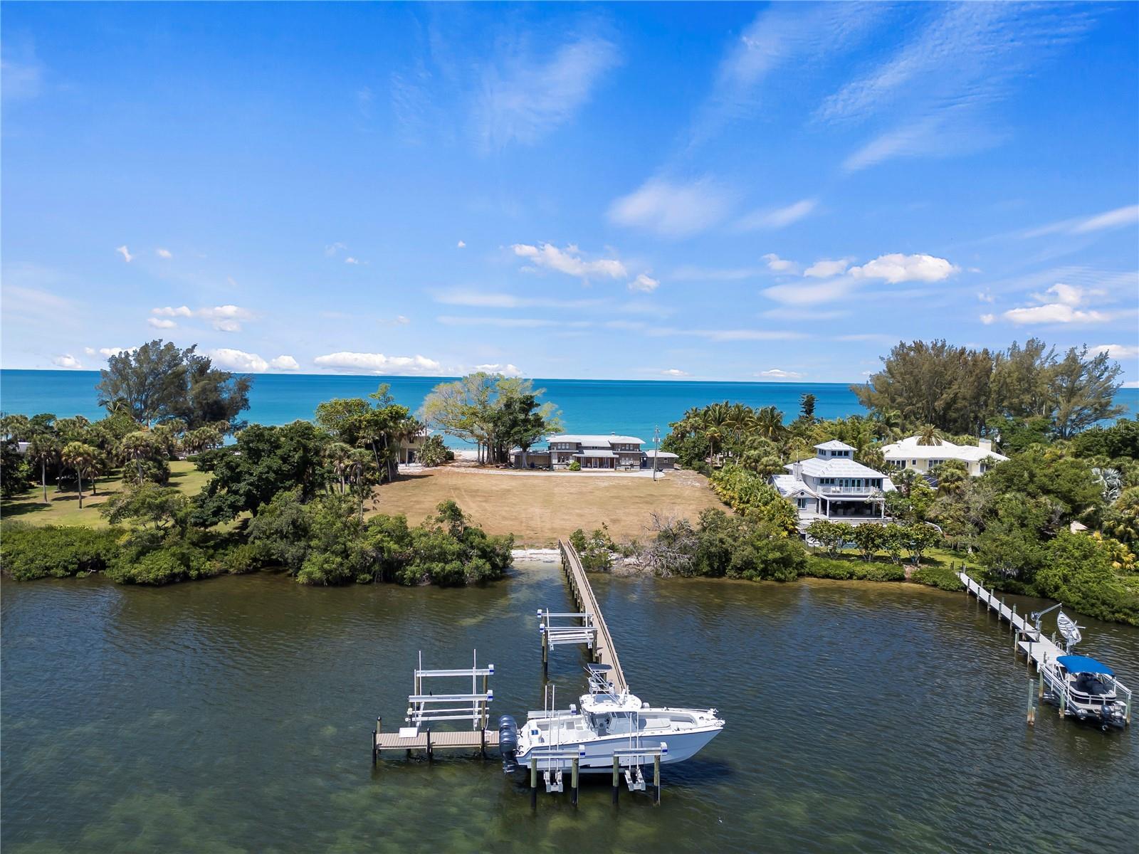 PublicRemarks:-Rarely available Gulf to Bay estate size property with 175 feet of Gulf frontage, 175 feet of Bay frontage and encompassing 1.5 acres is located on the exclusive North End of Casey Key. Casey Key, distinguished for its absence of high-rises, traffic congestion, and private beaches, is one of the most esteemed barrier islands of Sarasota and Florida’s Gulf Coast. Positioned amidst exclusivity and privacy, this property presents a prime canvas for luxurious coastal living. Opportunity to build a spectacular new residence with no barriers to removing the current structure; or embrace “Old Florida” and restore the original house built in 1916. This building is the first and oldest structure built on Casey Key and was utilized as a “Fishing Lodge”. Uniquely the front of the house is oriented to Little Sarasota Bay because when it was built there were no bridges and the guests arrived and departed on boats from the mainland! Numerous infrastructure items have been completed facilitating a seamless progression for prospective owners. Most noteworthy is the successful approval and issuance of the permit by the State of Florida Department of Environmental Protection Agency to build west of the coastal construction line, which allows for a 6600+ square foot two-story single-family residence, a 1600+ square foot one-story detached accessory structure with bonus suite, swimming pool, and a reflecting pond at the entrance of the main residence. This is significant because the State EPA permit is the most difficult permit to obtain; also, the Sarasota County building permits are currently in process. The impressive new dock is constructed with premium composite decking and sturdy pilings, which accommodates various vessel sizes, including a 40,000-pound boat lift for vessels over 40 feet, a 17,000-pound lift for boats ranging from 25 to 37 feet, plus a double wave runner lift. Extending 162 feet into the bay, the dock offers power and water access throughout its length, alongside amenities like a fish cleaning station and other conveniences. Additionally, the newly drilled 4-inch and 400-foot-deep irrigation well assures that the estate grounds will be a lush and tropical environment. Embracing the island lifestyle, residents relish the warm Gulf breezes by day and breathtaking sunsets at dusk. A favorite transportation choice by residents is often Golf Carts with easy access to nearby tiki bars, restaurants, grocery store, pharmacy and more. The property's strategic location just north of the historic Blackburn Point bridge facilitates excellent proximity to the mainland with top-rated schools, fine dining establishments, Downtown Sarasota, St Armand’s Circle, The Island of Venice, and world-class medical facilities. Notably, Casey Key is the ONLY barrier island in the region with an expressway from Tamiami Trail to I75 creating easy access to all area international airports, plus private air travel options within ten minutes. The allure of this locale is undeniable, as Casey Key Road was recently acclaimed as the most impressive street nationwide, underscoring the unparalleled status of this magical barrier island. InteriorFeatures:-Ninguno Directions:- Blackburn Point Road to north on Casey Key Rd. Property is 8 blocks. Appliances:-Microwave, Refrigerator
