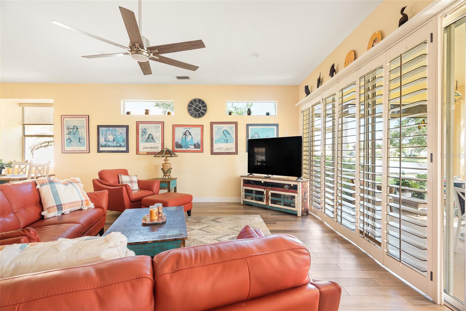 PublicRemarks:-Located in the prestigious community of Oyster Creek! The moment you enter the gate your taken into a lush Florida paradise. This 3/2/2 sits on the cusp of a tranquil lake which provides calming breezes throughout the house and lanai area. Floor to ceiling over sized glass doors let natural light flood in. Split bedrooms and open floor plan create an airy and homey feel. The entire home has been pampered with a full interior and exterior paint job, remodeled guest bathroom, plantation shutters, interior fixtures, flooring throughout, 2021 HVAC unit, 2023 Water Heater, backsplash, Lanai electric roll down shutters, Hurricane impact garage door with screen, stunning paver drive-way, Impact Hurricane Windows, bathroom vanities and appliances. The home is only a few steps away from the community club house, lap pool and spa/ hot tub! Oyster Creek is the hidden gem of Englewood and 8413 Gateway is the pearl of the community! This owner has meticulously maintained and loved the home, which shows in all aspects. It's time to call this your new home and start creating your memories! InteriorFeatures:-Built-in Features, Cathedral Ceiling(s), Ceiling Fans(s), Crown Molding, High Ceilings, Open Floorplan, Primary Bedroom Main Floor, Solid Surface Counters Appliances:-Refrigerator
